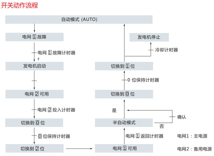● 具有主電源合、備用電源分;主電源分、備用電源合;主、備電源均斷開三種穩定工作(| -o-||);